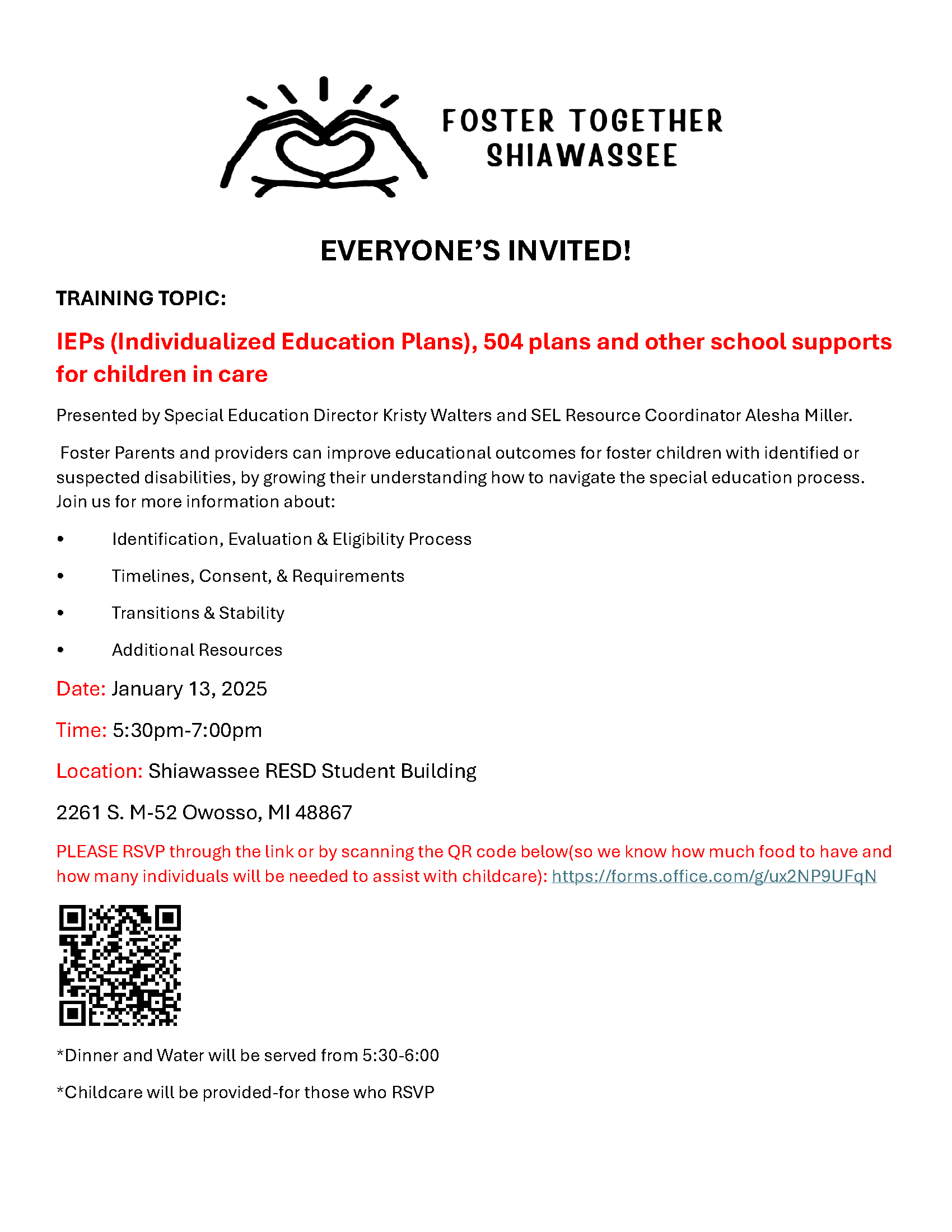 Shiawassee RESD Student Learning Center West – 2261 S. M 52 Owosso, MI 48867